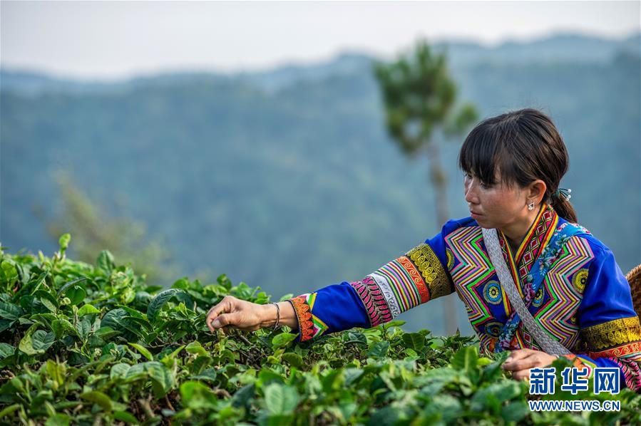 4月11日,在云南省勐海縣布朗山鄉(xiāng),娜四在采茶。新華社記者胡超攝