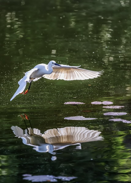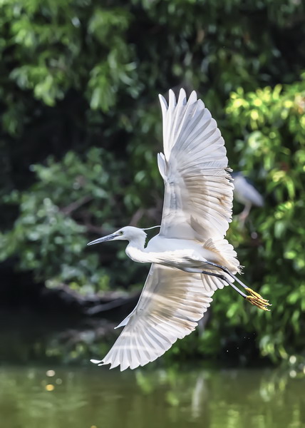 4月15日,攝于南山區(qū)華僑城天鵝堡附近。這是深圳拍鷺鳥的其中一個好去處。白鷺飛行時頭往回縮至肩背處,頸向下曲成袋狀,兩腳向后伸直,遠遠突出于尾后,兩翅緩慢地鼓動飛翔。徐捷攝