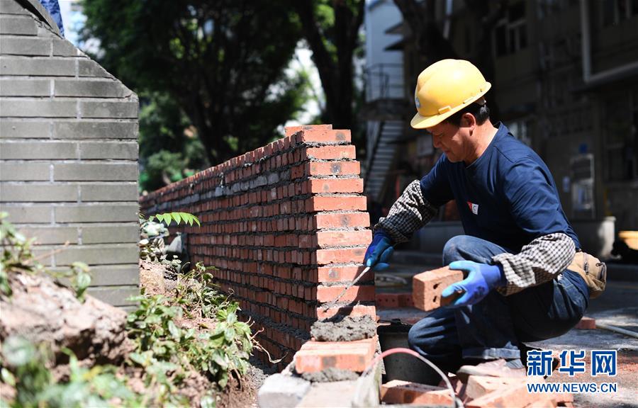 4月26日,工人在渝中區(qū)大溪溝街道雙鋼路社區(qū)改造提升項(xiàng)目施工現(xiàn)場作業(yè)。近段時間以來,重慶市渝中區(qū)大溪溝街道加快推進(jìn)轄區(qū)內(nèi)老舊小區(qū)改造提升工作,從環(huán)境衛(wèi)生、房屋管理及養(yǎng)護(hù)、安防及車輛管理、綠化管理等方面進(jìn)行綜合改造提升,以增強(qiáng)社區(qū)居民的幸福感、獲得感、安全感。新華社記者王全超攝