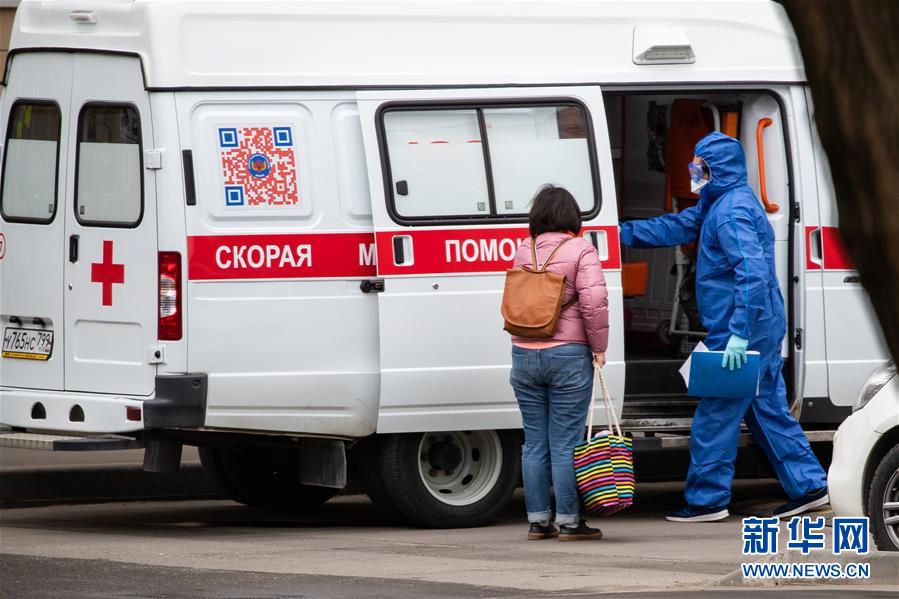 4月27日,在俄羅斯首都莫斯科,醫(yī)護(hù)人員(右)引導(dǎo)一名女子走上救護(hù)車。據(jù)俄羅斯防疫指揮部27日消息,過去24小時俄新增新冠肺炎確診病例6198例,累計確診87147例,單日增幅7.66%。新華社記者白雪騏攝