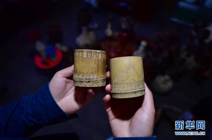 李義成在村民家里了解手工藝品的制作情況(4月26日攝)。新華社記者黃孝邦攝