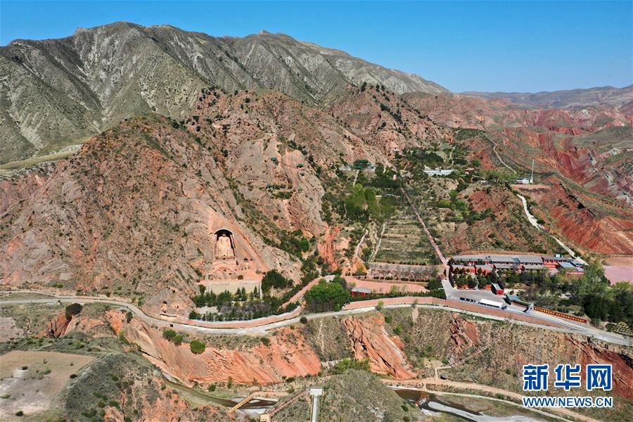 這是4月27日拍攝的寧夏須彌山石窟景觀(無(wú)人機(jī)照片)。新華社記者王鵬攝