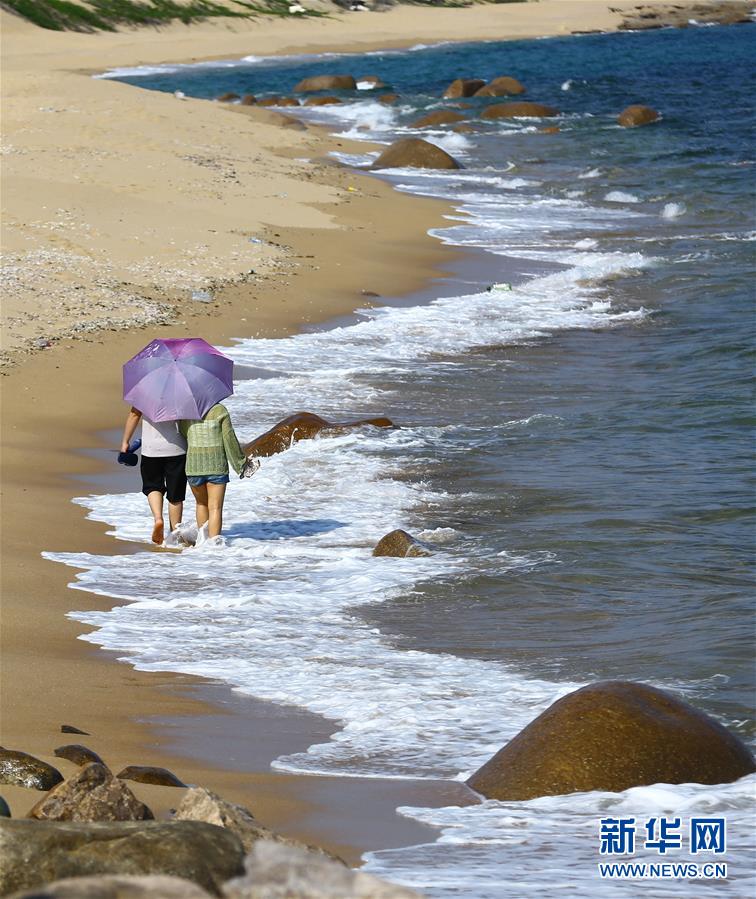 5月2日,游客在海南省三亞市南山景區(qū)海邊踏浪休閑。“五一”假日期間,人們以多種方式放松心情、享受假日。新華社發(fā)(陳文武攝)
