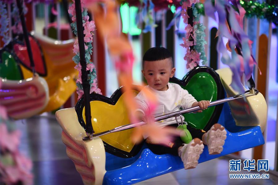 5月2日,一名小朋友在青海西寧一游樂場內(nèi)玩耍?!拔逡弧奔偃掌陂g,人們以多種方式放松心情、享受假日。新華社記者張宏祥攝