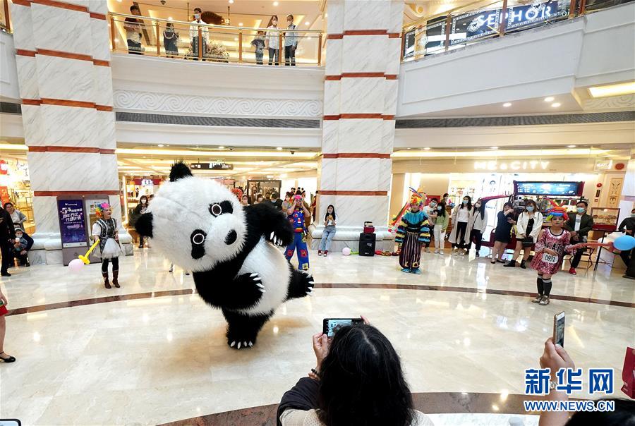5月5日,大熊貓人偶在上海環(huán)球港商場為“五五購物節(jié)”營造氣氛。5月4日晚,上海首次啟動大規(guī)模商業(yè)促銷活動“五五購物節(jié)”,多家在線新經(jīng)濟企業(yè)參與,通過線上流量優(yōu)勢反哺線下賣場,實現(xiàn)電商與實體零售融合互動,激活消費潛力、驅(qū)動消費復(fù)蘇。據(jù)“上海發(fā)布”的消息,截至5日14時12分,“五五購物節(jié)”上海地區(qū)消費支付總額已超100億元。新華社記者陳飛攝