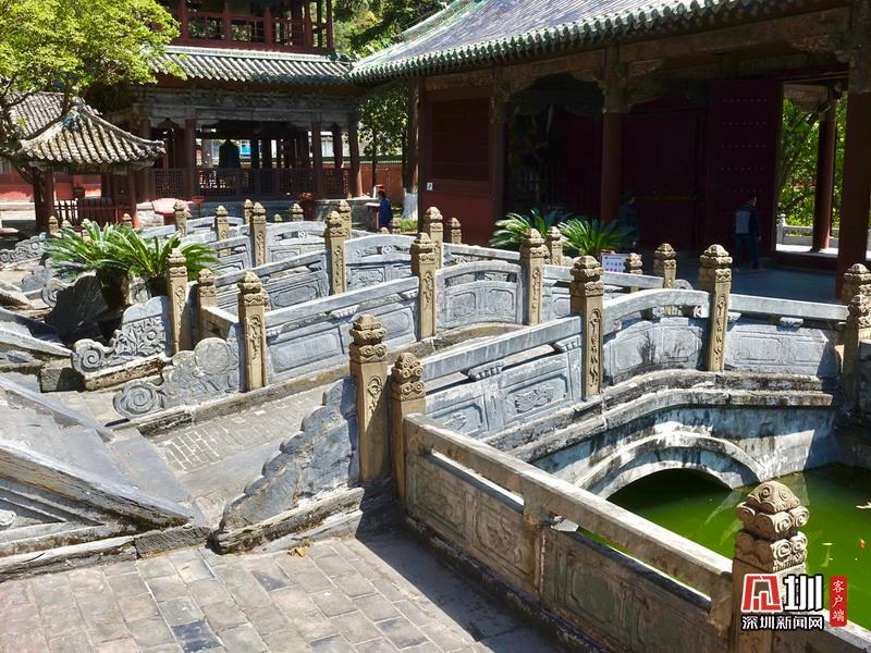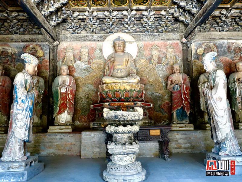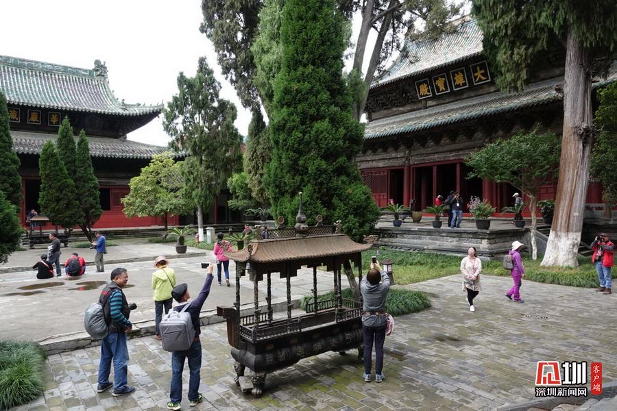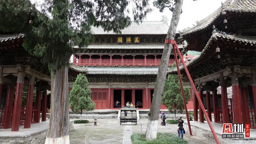 報(bào)恩寺布局結(jié)構(gòu)酷似北京紫禁城,被稱為“深山故宮”。寺內(nèi)古木參天,氣象森嚴(yán),飛檐凌空,金碧輝煌。大悲殿中的用整根楠木雕成的千手千眼觀音像、華嚴(yán)藏中的轉(zhuǎn)輪經(jīng)藏和泥塑蟠龍,以及遍布全寺的彩繪壁畫,都是世間罕見(jiàn)的藝術(shù)珍品。李仁奇攝