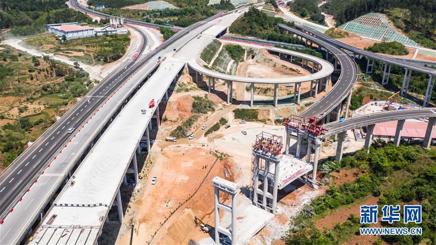 都安高速改擴建路段的惠水樞紐(無人機照片,5月9日攝)。  新華社記者 陶亮 攝