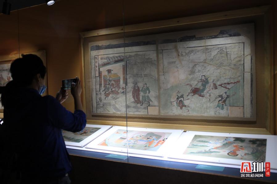 2020年5月10日報道,近十年來最大規(guī)模三國文物展“三國志——文化主題特展”,正在中華世紀壇展出。圖為觀眾在看關(guān)公壁畫。