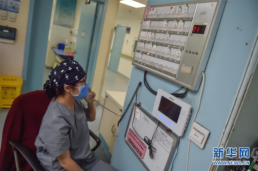 5月11日,在北京地壇醫(yī)院感染二科護士站,護士彭蒨接聽病房呼喚鈴電話。北京地壇醫(yī)院是北京市收治新冠肺炎患者的定點醫(yī)院之一,醫(yī)院的醫(yī)護人員一直奮戰(zhàn)在抗擊疫情的一線。在國際護士節(jié)前夕,記者前往北京地壇醫(yī)院,記錄下抗疫一線護士的日常工作狀態(tài)。新華社記者彭子洋攝