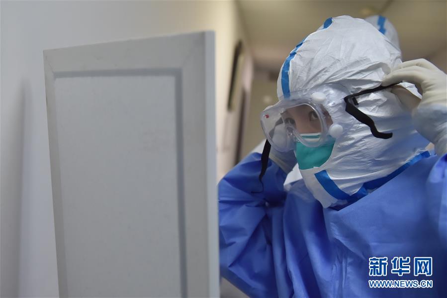 5月11日,在北京地壇醫(yī)院感染二科病房外,護士劉印懷穿戴防護設(shè)備準(zhǔn)備進入病房。北京地壇醫(yī)院是北京市收治新冠肺炎患者的定點醫(yī)院之一,醫(yī)院的醫(yī)護人員一直奮戰(zhàn)在抗擊疫情的一線。在國際護士節(jié)前夕,記者前往北京地壇醫(yī)院,記錄下抗疫一線護士的日常工作狀態(tài)。新華社記者彭子洋攝