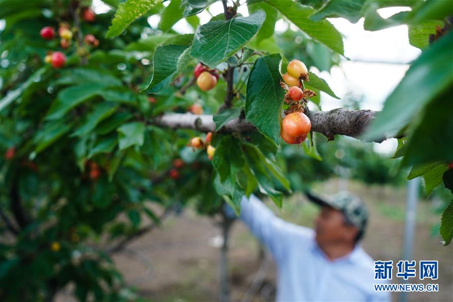 工作人員在金湖縣金綠源果蔬采摘園進行農(nóng)業(yè)管理(5月11日攝)。新華社記者季春鵬攝