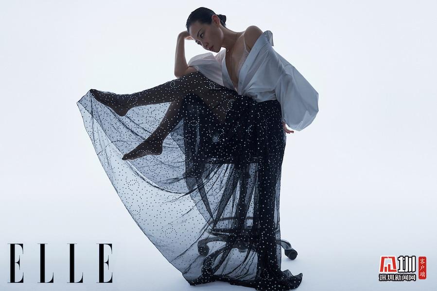 譚卓時尚大片曝光 盤發(fā)造型大秀天鵝頸