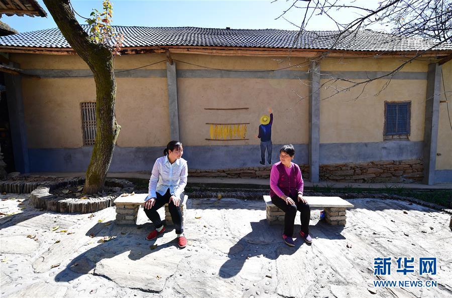 在安康市漢濱區(qū)茨溝鎮(zhèn)西溝村,村民在改造后的房屋院子內活動(2018年10月29日攝)。新華社記者邵瑞攝