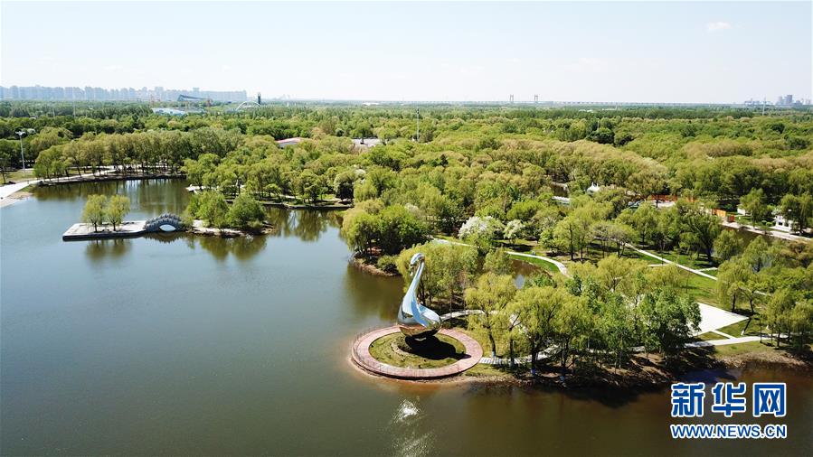 這是5月13日拍攝的太陽島風景區(qū)(無人機照片)。時下,位于黑龍江省哈爾濱市的太陽島國家級風景名勝區(qū)草青樹綠,綠意盎然。新華社記者王建威攝