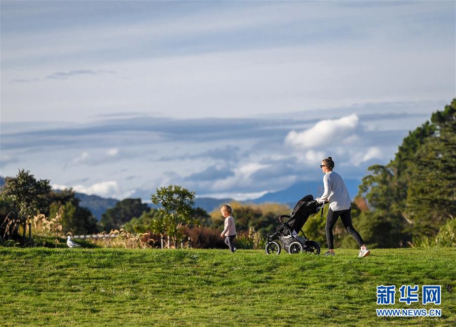 5月14日,在新西蘭首都惠靈頓郊外的公園,一名女子推車帶著孩子穿過草地。當(dāng)天是新西蘭從新冠疫情防控響應(yīng)三級(jí)下調(diào)到二級(jí)的第一天,經(jīng)濟(jì)活動(dòng)全面重啟,公園等公共設(shè)施首次重新開放,中小學(xué)生將于5月18日全面返校復(fù)課。新華社記者郭磊攝