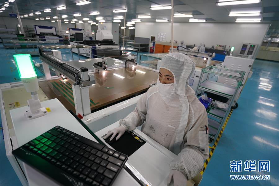在位于宿遷激光產(chǎn)業(yè)園的江蘇華科創(chuàng)智技術(shù)有限公司,工人在觸摸屏生產(chǎn)車間作業(yè)(5月13日攝)。江蘇省宿遷市2016年初啟動建設(shè)宿遷激光產(chǎn)業(yè)園,目前,園區(qū)共有激光及相關(guān)配套企業(yè)50余家,涉及激光切割、激光打標、激光醫(yī)療等。當(dāng)?shù)夭粩嗤晟茍@區(qū)配套設(shè)施,推動激光產(chǎn)業(yè)集聚,打造激光研發(fā)、裝備制造和加工應(yīng)用的完整產(chǎn)業(yè)鏈。新華社記者李博攝