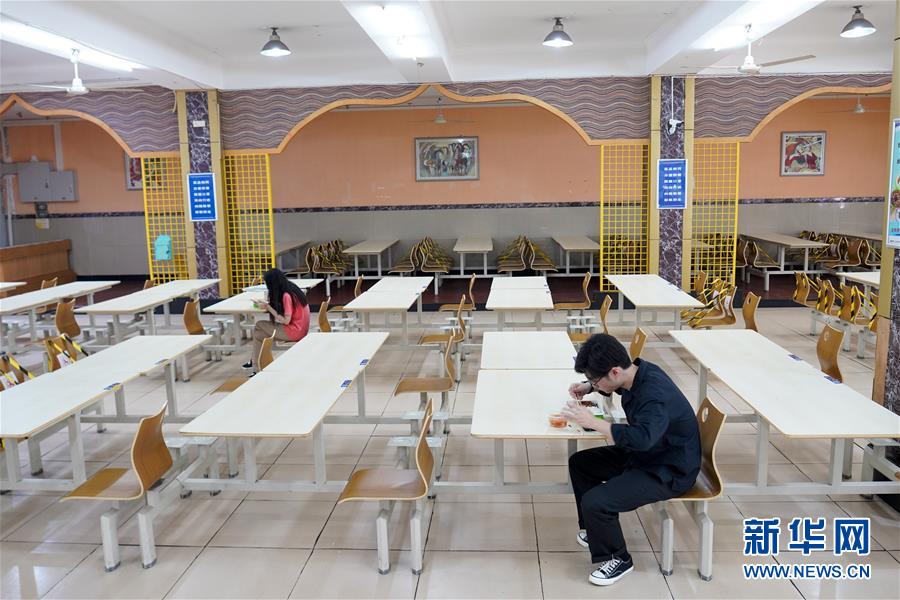 5月15日,在西南大學的一個學生食堂內,學生按照要求一人一桌吃午餐。當日,重慶西南大學迎來疫情以來首批返校大學生。據(jù)介紹,按照疫情防控的需要,重慶市高校2020年春季學期從5月11日起按照“一校一策”原則,實行錯峰錯時分批次有序開學復課。新華社記者劉潺攝