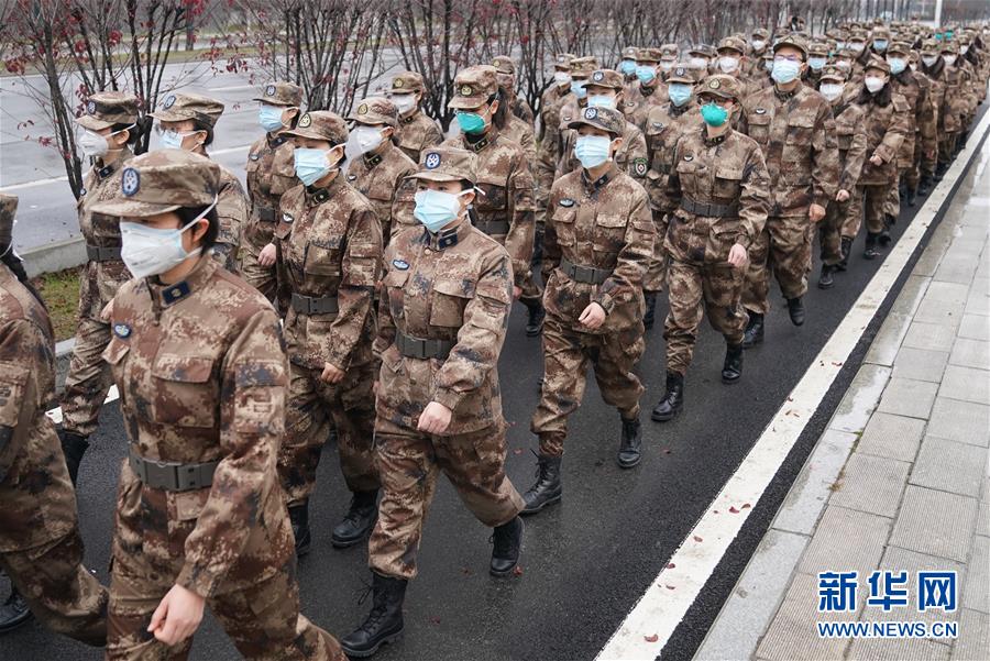 陸軍軍醫(yī)大學醫(yī)療隊開始進駐武漢市金銀潭醫(yī)院(1月26日攝)。新華社記者程敏攝