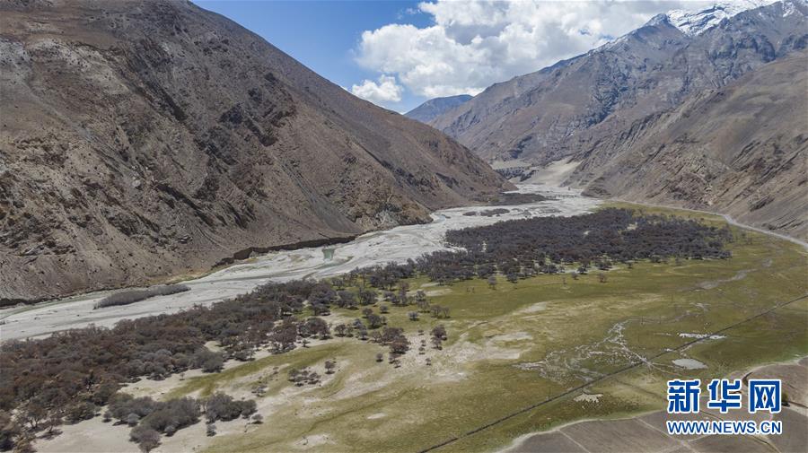 珠穆朗瑪峰國家級自然保護區(qū)內(nèi)的沙棘林和濕地(5月16日攝,無人機照片)。新華社記者普布扎西攝