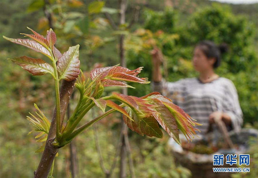 5月17日,秦皇島市撫寧區(qū)王家灣村的一位村民在自家香椿園采摘香椿芽。近年來,河北省秦皇島市撫寧區(qū)王家灣村村委會帶領村民在坡嶺荒地種植紅香椿樹1000多畝,綠化了荒坡荒地,增加了農(nóng)民收入。新華社記者楊世堯攝