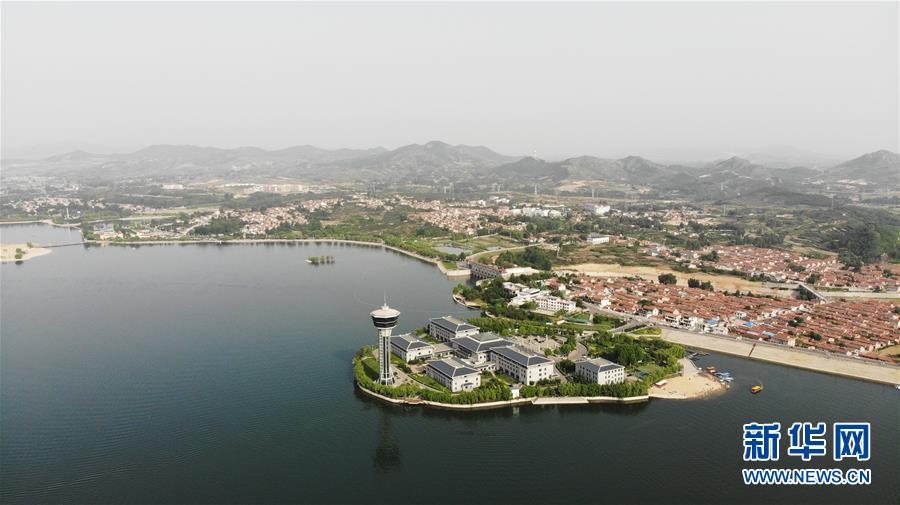 這是5月17日拍攝的雪野湖景色(無人機(jī)照片)。山東濟(jì)南風(fēng)景區(qū)——雪野湖波光粼粼,岸邊綠樹環(huán)抱,加上星星點點的帆船在湖面搖曳,景色宜人。新華社記者王凱攝
