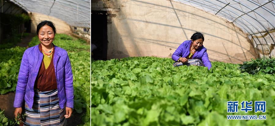 拼版照片:左圖為西藏昌都市左貢縣旺達(dá)鎮(zhèn)列達(dá)村村民阿旺拉珍;右圖為阿旺拉珍在左貢縣旺達(dá)鎮(zhèn)列達(dá)村的蔬菜大棚里忙碌。近年來,列達(dá)村大力發(fā)展蔬菜產(chǎn)業(yè),建起溫室大棚30座,按照每4戶1座大棚的模式進(jìn)行種植、管理和銷售。阿旺拉珍在大棚里種了白菜、辣椒和白蘿卜,一年收入近萬(wàn)元(5月7日攝)。新華社記者詹彥攝