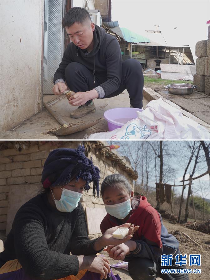 拼版照片上圖:在四川省涼山彝族自治州美姑縣瓦古鄉(xiāng),彭?xiàng)钤谙魍炼蛊ぃ瑴?zhǔn)備制作土豆手工皂(3月10日,新華社記者吳光于攝);下圖:在瓦古鄉(xiāng),15歲的沙馬也曲(右)和她的媽媽拿到了彭?xiàng)钪谱鞯耐炼故止ぴ恚?月10日,新華社記者薛晨攝)。四川省涼山彝族自治州美姑縣瓦古鄉(xiāng)扶貧干部彭?xiàng)钏诘墓庞X村距鄉(xiāng)政府20公里,是美姑縣80個(gè)尚未脫貧村之一。他深知養(yǎng)成好的生活習(xí)慣,對(duì)當(dāng)?shù)孛撠氈陵P(guān)重要,所以他不僅督促老百姓疊被子、整理房間,幫當(dāng)?shù)氐暮⒆觽兿搭^、洗澡,還在疫情期間自制土豆手工皂分發(fā)給村民。彭?xiàng)钫f,疫情后準(zhǔn)備發(fā)動(dòng)留守婦女生產(chǎn)手工皂,計(jì)劃在1年內(nèi)建成一個(gè)吸納瓦古鄉(xiāng)4個(gè)村村民的手工皂合作社。黨的十八大以來,我們堅(jiān)持以人民為中心的發(fā)展思想,明確了到2020年我國現(xiàn)行標(biāo)準(zhǔn)下農(nóng)村貧困人口實(shí)現(xiàn)脫貧、貧困縣全部摘帽、解決區(qū)域性整體貧困的目標(biāo)任務(wù)。目前看,脫貧進(jìn)度符合預(yù)期,成就舉世矚目。這些成績的取得,凝聚了全黨全國各族人民智慧和心血,是廣大干部群眾扎扎實(shí)實(shí)干出來的。脫貧摘帽不是終點(diǎn),而是新生活、新奮斗的起點(diǎn)。新華社發(fā)
