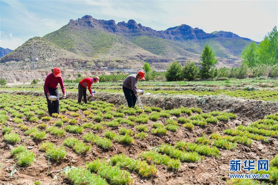 宋家溝村村民在給樹苗施肥(5月19日攝)。新華社記者曹陽攝