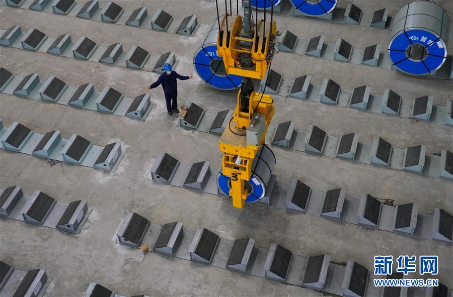 5月22日,工人在遷安市首鋼遷鋼高端汽車板生產車間吊運成品鋼卷。近日,首鋼股份公司遷安鋼鐵公司高端汽車板生產線項目在河北省遷安市投產。該項目具有技術水平領先、操作智能、節(jié)能環(huán)保等優(yōu)勢,酸洗板材年產量達100萬噸,產品主要應用于高端汽車零部件生產及空調壓縮機用鋼和高強系列用鋼、精沖用鋼等多個領域。新華社記者 楊世堯 攝