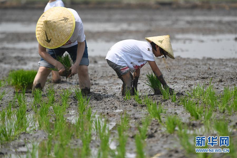 5月24日,小朋友與家長(zhǎng)在稻田里參加親子插秧比賽。當(dāng)日,十余名小朋友在家長(zhǎng)的帶領(lǐng)下來到浙江省湖州市吳興區(qū)八里店鎮(zhèn)尹家圩糧油植保農(nóng)機(jī)專業(yè)合作社的稻田中,參加親子插秧、稻田捉魚等農(nóng)事體驗(yàn)活動(dòng)。新華社記者黃宗治攝