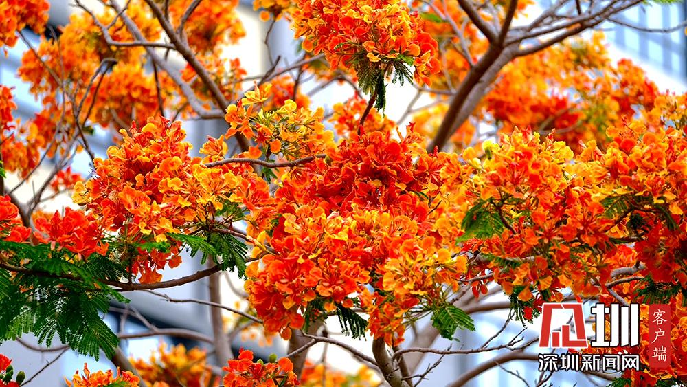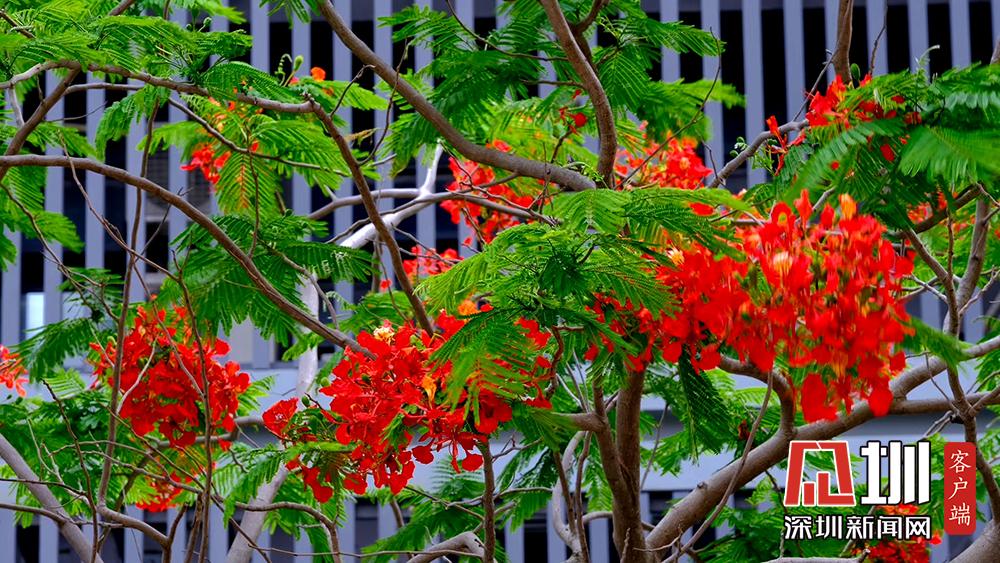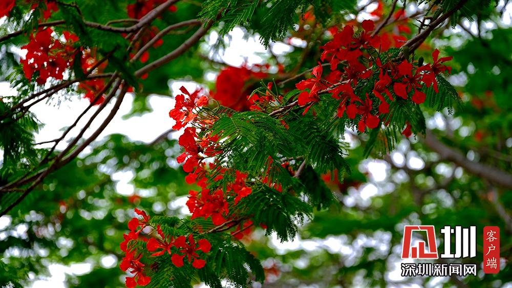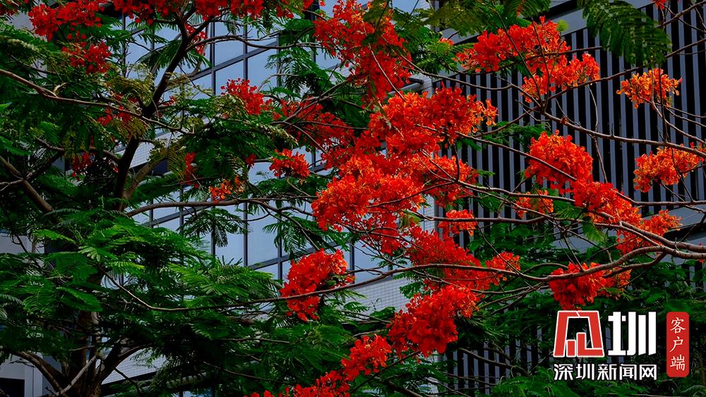 近日,深圳的鳳凰花進入花期。TCL科技園內(nèi),隨處可見盛開的鳳凰花。徐捷攝
