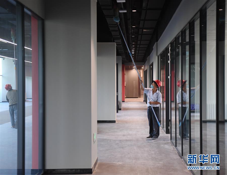 5月27日,保潔人員在“冰壇”內(nèi)部進行保潔工作。新華社記者張晨霖攝