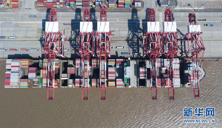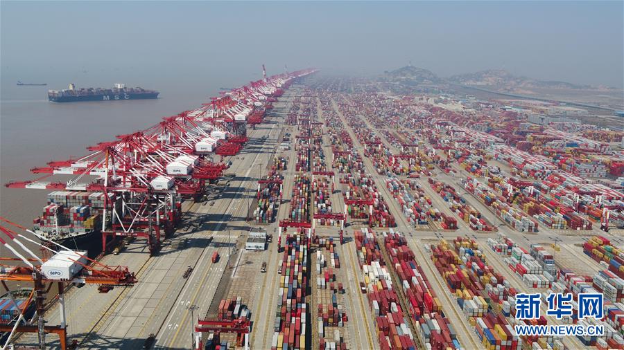 這是3月18日拍攝的上海洋山港集裝箱碼頭(無人機(jī)照片)。新華社記者丁汀攝