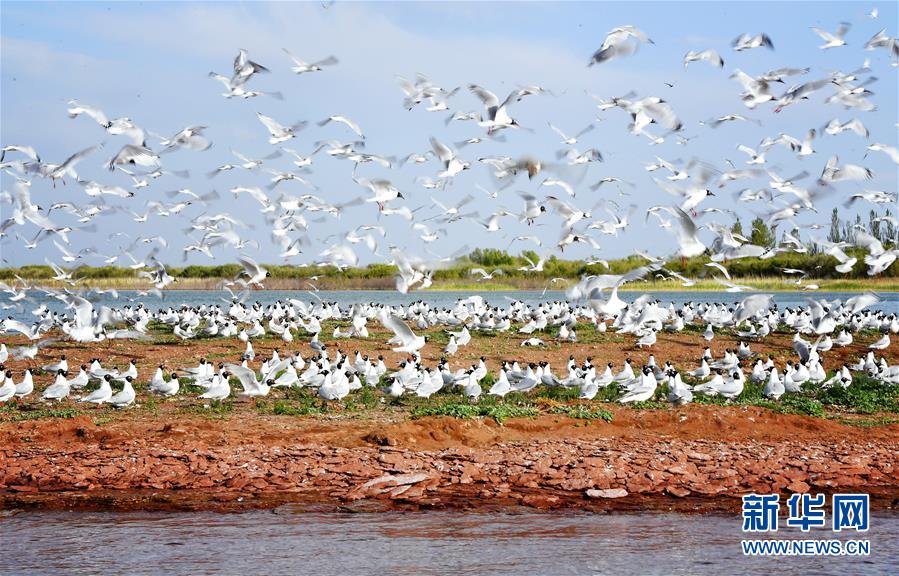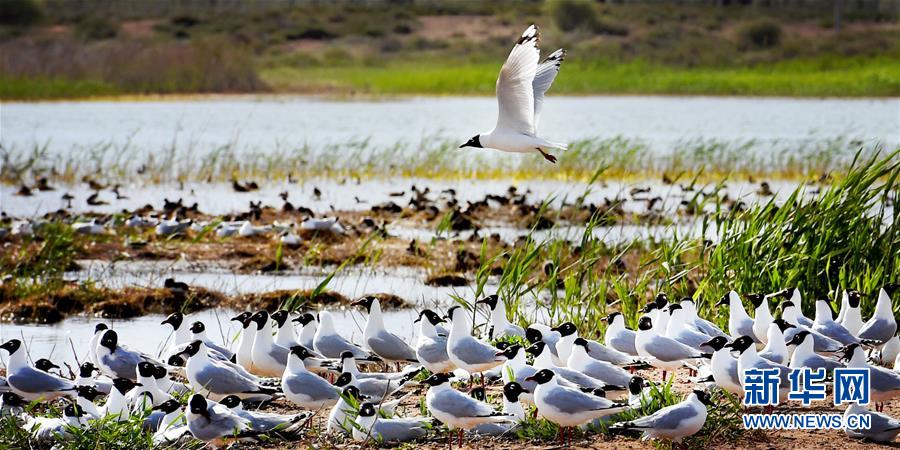 5月27日在陜西省神木市紅堿淖拍攝的遺鷗。陜西省神木市紅堿淖是中國最大的沙漠淡水湖,近年來隨著周邊生態(tài)環(huán)境改善,紅堿淖水位逐年提升,水域面積不斷擴(kuò)大,每年四至八月,都會吸引大批遺鷗來此繁衍棲息,已成為遺鷗繁殖的重要基地。新華社記者劉瀟攝
