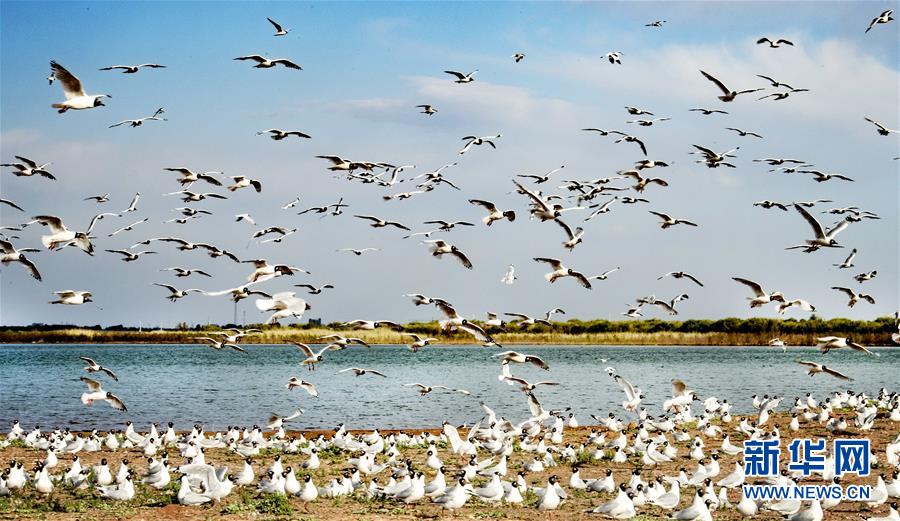 5月27日在陜西省神木市紅堿淖拍攝的遺鷗。陜西省神木市紅堿淖是中國最大的沙漠淡水湖,近年來隨著周邊生態(tài)環(huán)境改善,紅堿淖水位逐年提升,水域面積不斷擴大,每年四至八月,都會吸引大批遺鷗來此繁衍棲息,已成為遺鷗繁殖的重要基地。新華社記者陶明攝