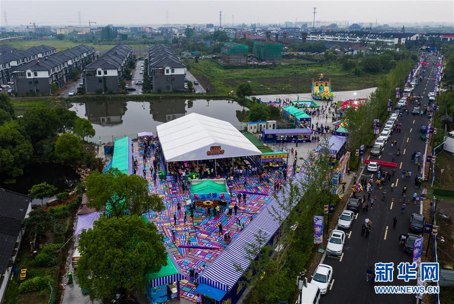 空中俯瞰龍蝦狂歡節(jié)美食現(xiàn)場(5月30日攝,無人機照片)。新華社記者徐昱攝