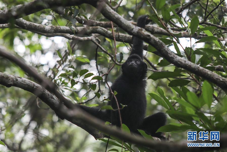 這是在海南霸王嶺自然保護區(qū)內(nèi)拍攝的海南長臂猿(2019年10月25日攝)。新華社記者蒲曉旭攝