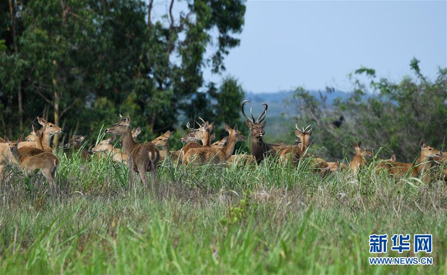 一群坡鹿在海南邦溪坡鹿自然保護(hù)區(qū)內(nèi)休憩(4月3日攝)。新華社記者楊冠宇攝