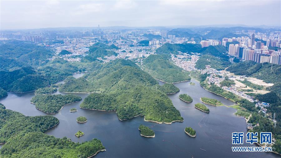 6月2日拍攝的貴陽(yáng)市阿哈湖國(guó)家濕地公園(無人機(jī)照片)。初夏時(shí)節(jié),貴州省貴陽(yáng)市阿哈湖國(guó)家濕地公園草木蒼翠,風(fēng)景如畫,吸引人們前來休閑游玩。新華社記者陶亮攝。