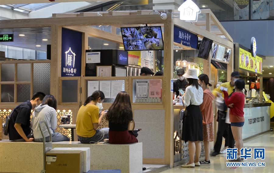6月3日,市民及游客在西單大悅城商場內(nèi)購買食品。近日,游人和市民紛紛來到北京市的王府井、西單、前門大街等著名商業(yè)街購物休閑,這些老商業(yè)街開始逐步恢復昔日的繁華。新華社記者李欣攝。