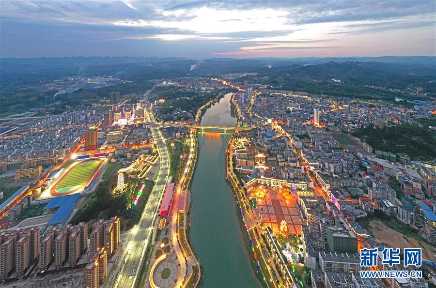 廣西環(huán)江毛南族自治縣縣城夜景(5月22日攝,無(wú)人機(jī)照片)。新華社記者周華攝。
