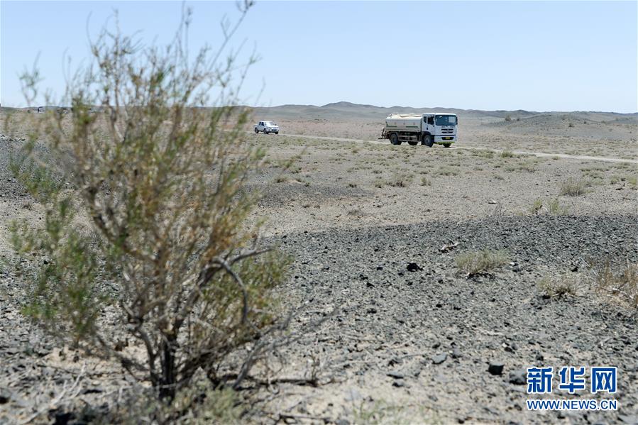 在新疆卡拉麥里山有蹄類野生動物自然保護區(qū),管護員為野生動物拉運飲水(6月3日攝)。新華社記者丁磊攝。