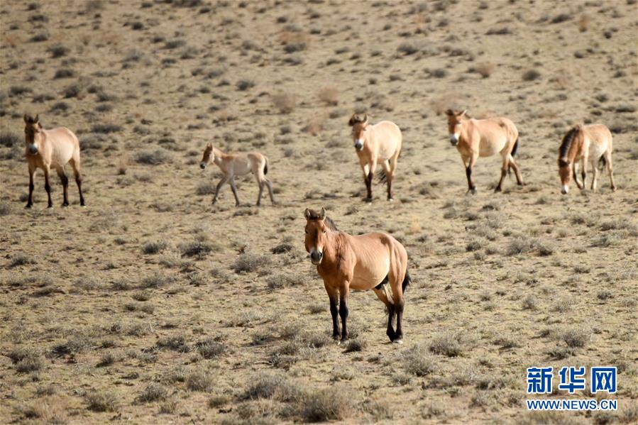 這是6月3日在新疆卡拉麥里山有蹄類野生動物自然保護區(qū)拍攝的普氏野馬。新華社記者丁磊攝。