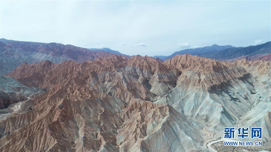這是6月5日拍攝的位于青海省海南藏族自治州貴德縣境內(nèi)的丹霞地貌(無(wú)人機(jī)照片)。在青海省海南藏族自治州貴德縣境內(nèi),色彩斑斕的丹霞地貌美如畫卷。新華社記者趙玉和攝。