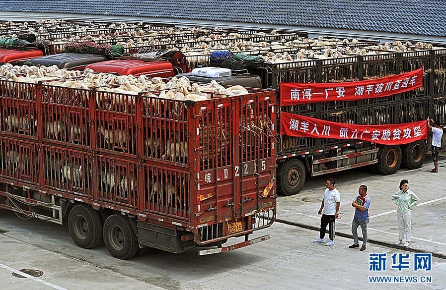 6月7日,裝運(yùn)湖羊的貨車準(zhǔn)備發(fā)車。當(dāng)日,浙江省湖州市南潯區(qū)湖羊養(yǎng)殖場飼養(yǎng)的五千余頭湖羊啟程運(yùn)往該區(qū)對口幫扶的四川省廣安市廣安區(qū)。2018年以來,南潯區(qū)依托湖羊養(yǎng)殖產(chǎn)業(yè)優(yōu)勢,積極實(shí)施“湖羊入川”和“湖羊致富”工程,向?qū)趲头龅貐^(qū)提供優(yōu)質(zhì)湖羊種羊和湖羊養(yǎng)殖技術(shù)指導(dǎo)。截至目前,南潯區(qū)已向廣安等地提供1.2萬余頭扶貧湖羊。新華社記者譚進(jìn)攝