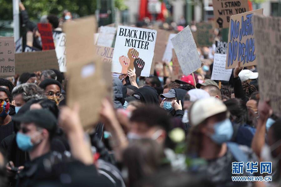 6月7日,民眾在比利時(shí)布魯塞爾市中心的司法宮附近參加示威活動(dòng)。比利時(shí)民眾當(dāng)日在布魯塞爾市中心的司法宮附近舉行示威活動(dòng),抗議美國明尼阿波利斯市警察暴力執(zhí)法致非裔男子喬治·弗洛伊德死亡。新華社記者鄭煥松攝