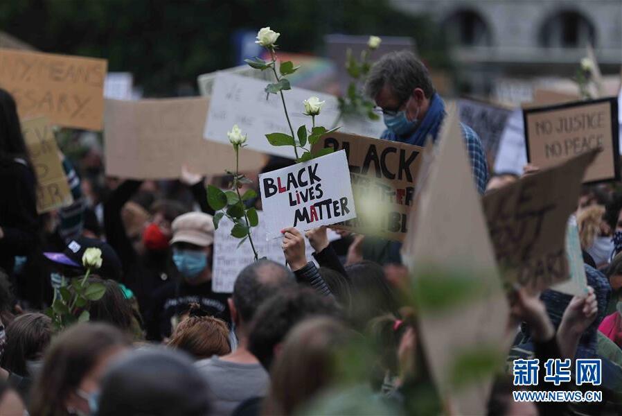 6月7日,民眾在比利時布魯塞爾市中心的司法宮附近參加示威活動。比利時民眾當(dāng)日在布魯塞爾市中心的司法宮附近舉行示威活動,抗議美國明尼阿波利斯市警察暴力執(zhí)法致非裔男子喬治·弗洛伊德死亡。新華社記者鄭煥松攝