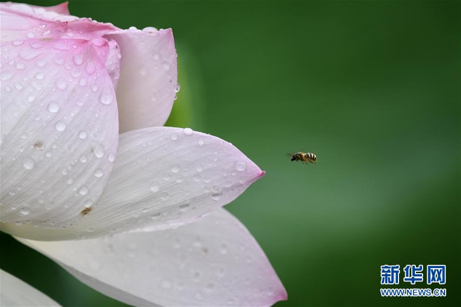 6月7日,一陣小雨過(guò)后,福州金山公園內(nèi)盛開的荷花愈加?jì)善G欲滴。新華社記者姜克紅攝