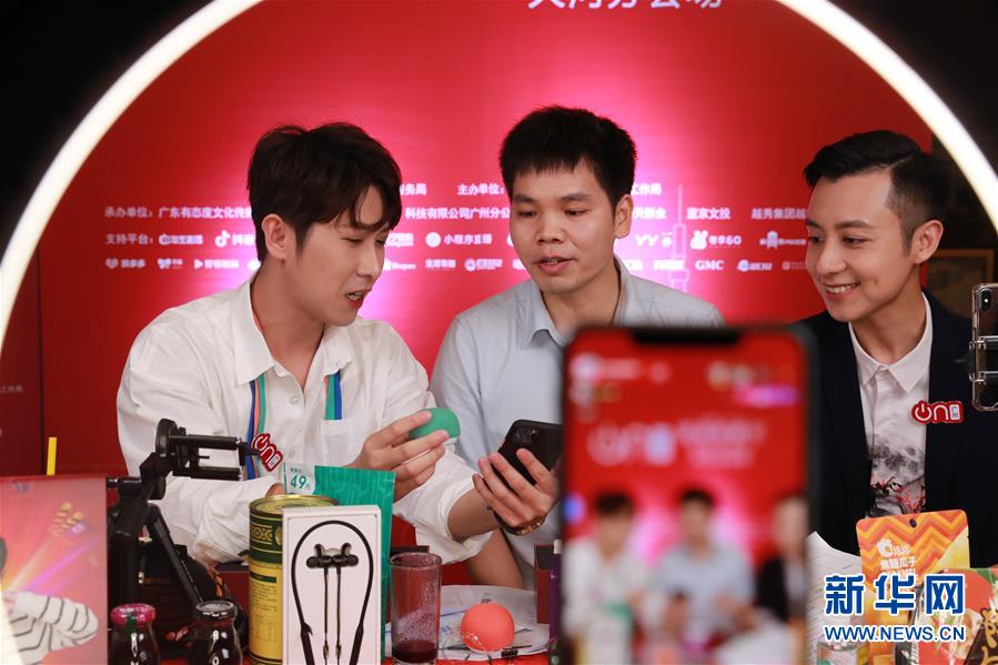 6月6日,主播在廣州市天河區(qū)分會(huì)場(chǎng)直播帶貨。新華社記者盧燁攝