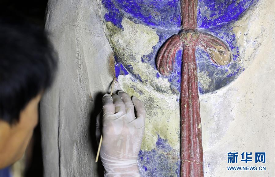 6月8日,工作人員對奉國寺的彩繪泥塑進(jìn)行保護(hù)修復(fù)。新華社記者姚劍鋒攝